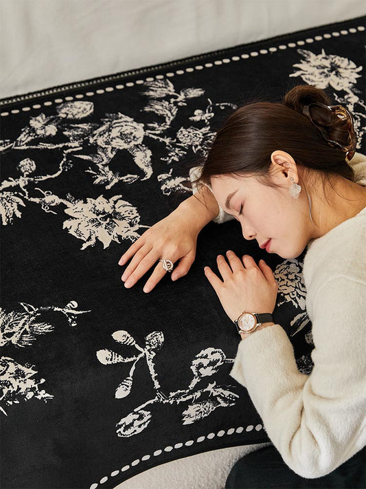 Irregular Black Floral Sofa Cover