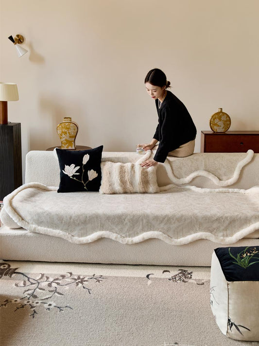 Irregular Beige Floral Sofa Cover