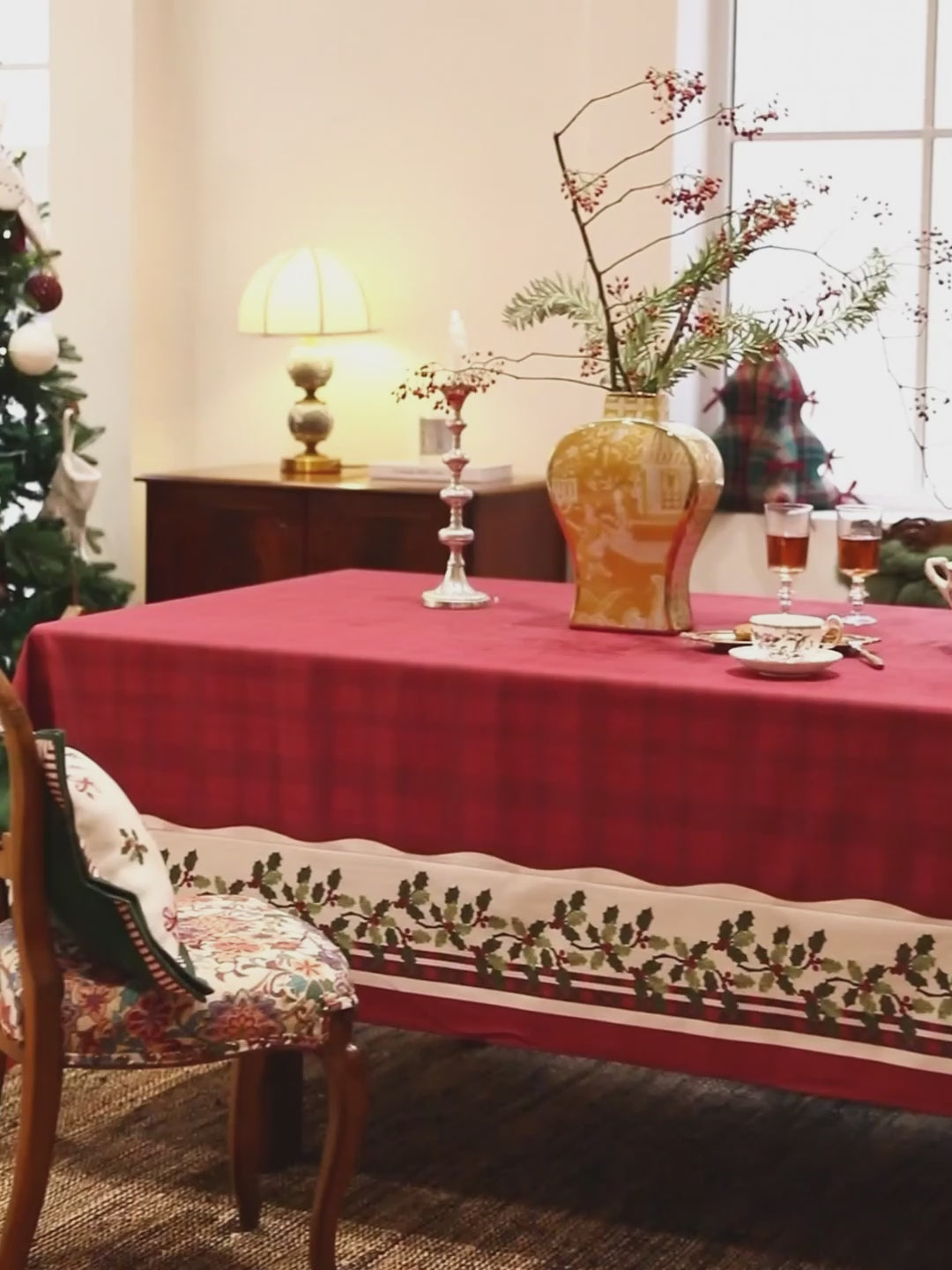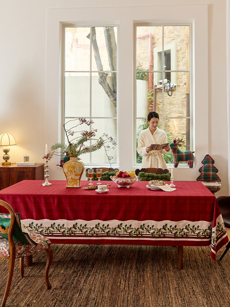 Inspired by the timeless elegance of winter foliage, this design features a beautiful holly print pattern that adds a festive touch to your table, symbolizing joy and abundance.