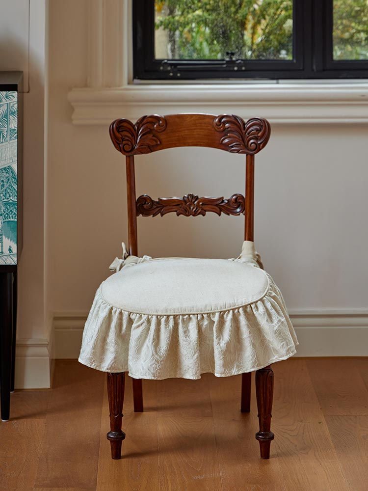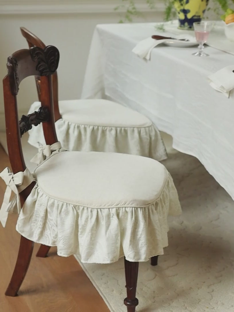 Add a soft, vintage charm to your space with this delicate chair seat cushion—where textured fabric and handcrafted pleats bring elegance to every seat.