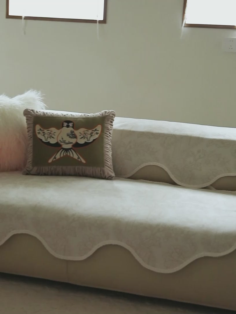Irregular Beige Floral Sofa Cover