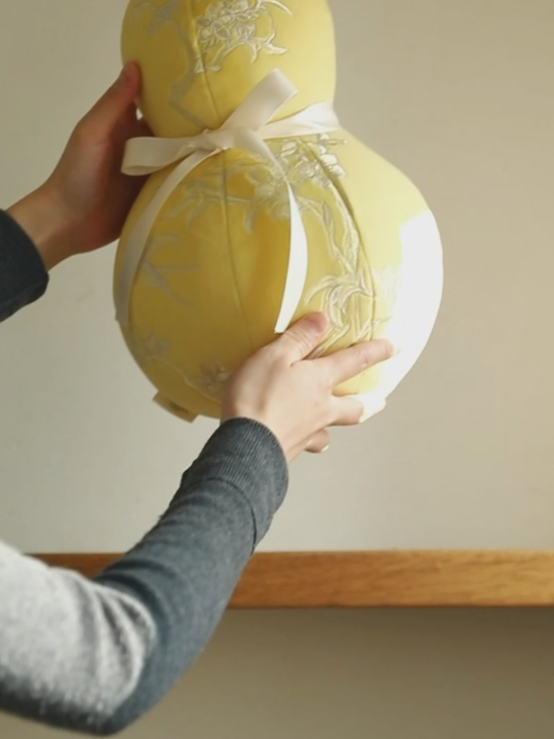 The inspiration for this pillow comes from the gourd shape and natural floral and bird elements, showcasing the beauty and harmony of nature.