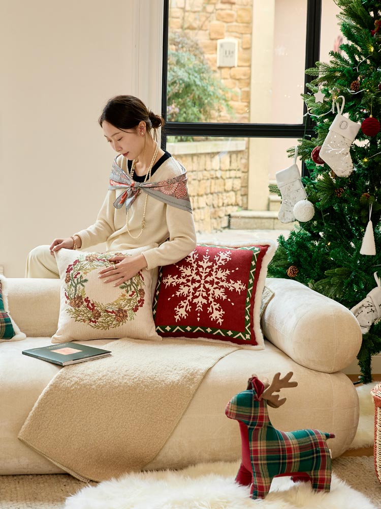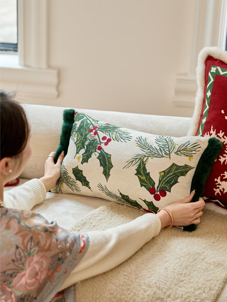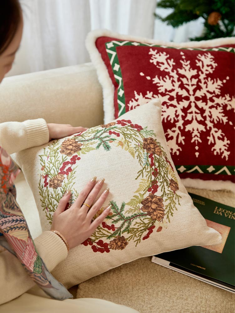Inspired by the Christmas, where snow blankets the world and only holly and pine remain vibrant, this pillow captures the essence of a serene Christmas. It brings warmth and festive cheer, filling your home with the magic of the hapiness.