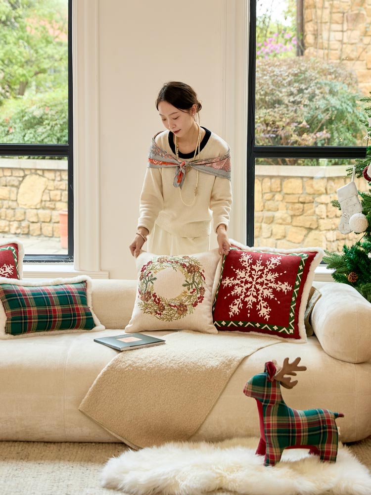 Create a cozy holiday atmosphere with these Christmas-themed throw pillows. Featuring festive embroidery and rich textures. Perfect for adding a touch of holiday magic to your home!