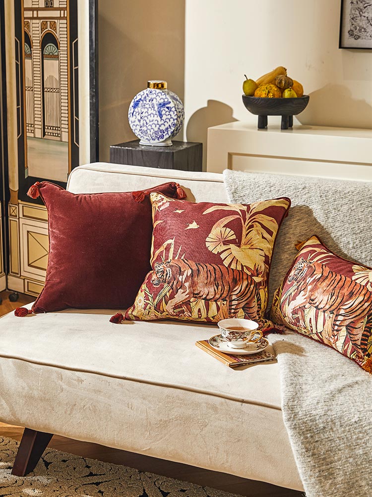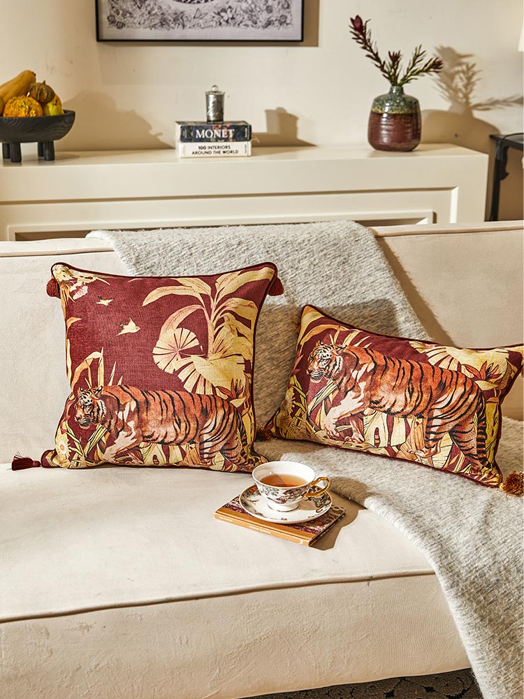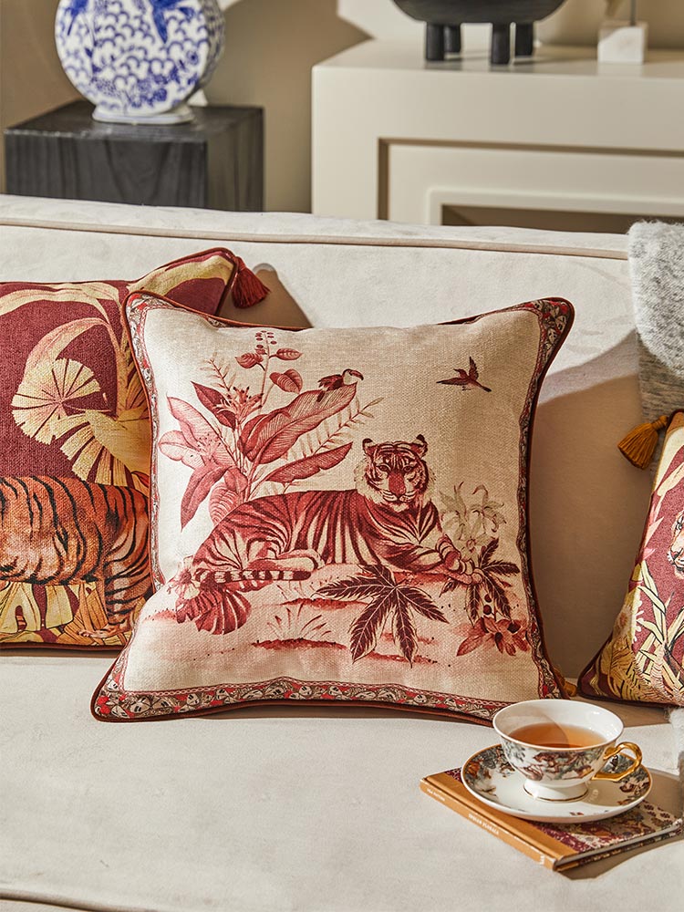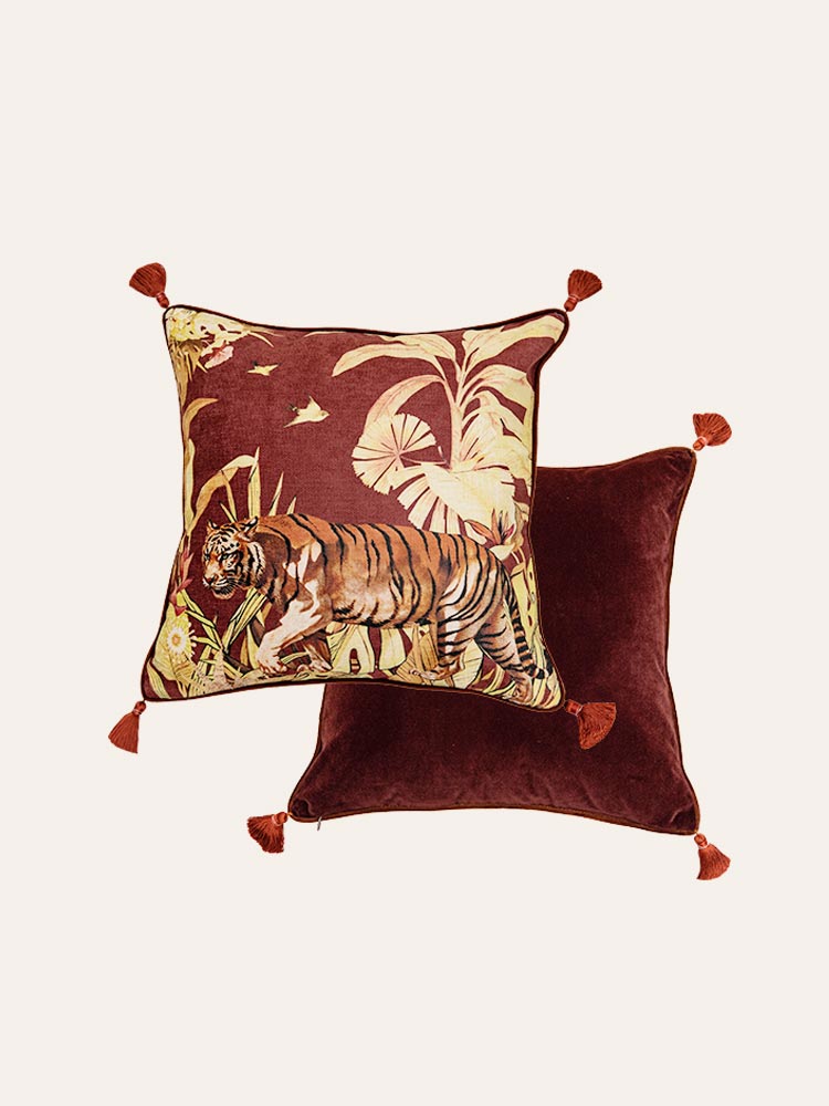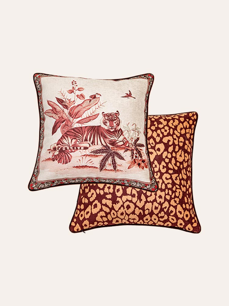 With majestic tiger motifs and vintage botanical accents, this cushion set exudes wild elegance and timeless charm.