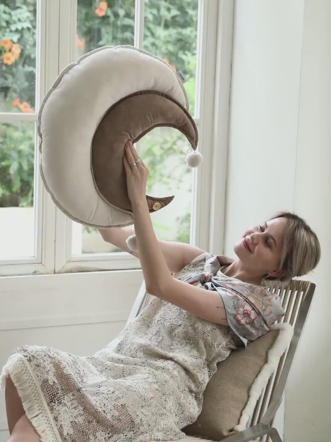 Inspired by the moon in the night sky, this pillow blends softness with dreamy elements, adding warmth and tranquility to any space.