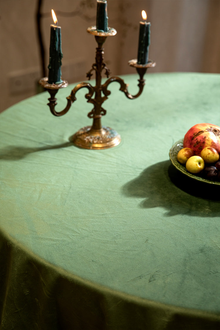 Verde Minimalist Christmas Solid Green Velvet Tablecloth