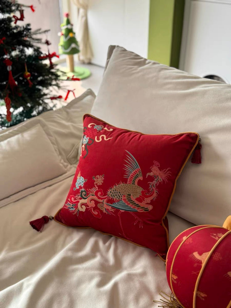 A touch of imperial elegance, woven into every thread—this crimson pillow cover brings timeless grandeur and cultural richness to your space, where tradition meets artistry.